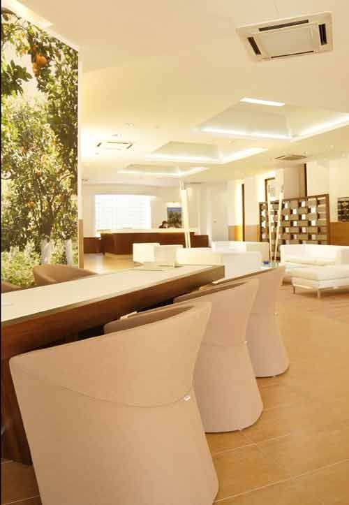 O 'Bar do Lobby' do hotel Erythra é um local ideal para aqueles que procuram por um lugar relaxante na ilha de Chios.